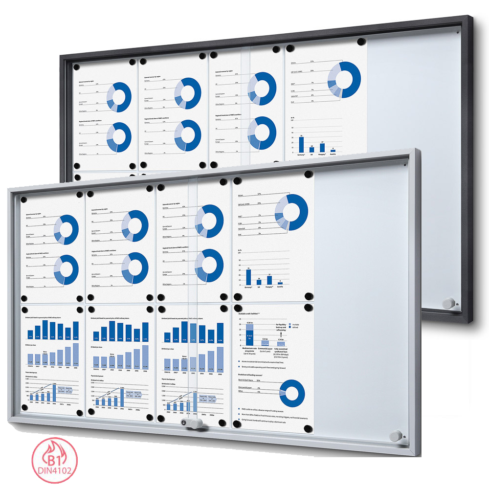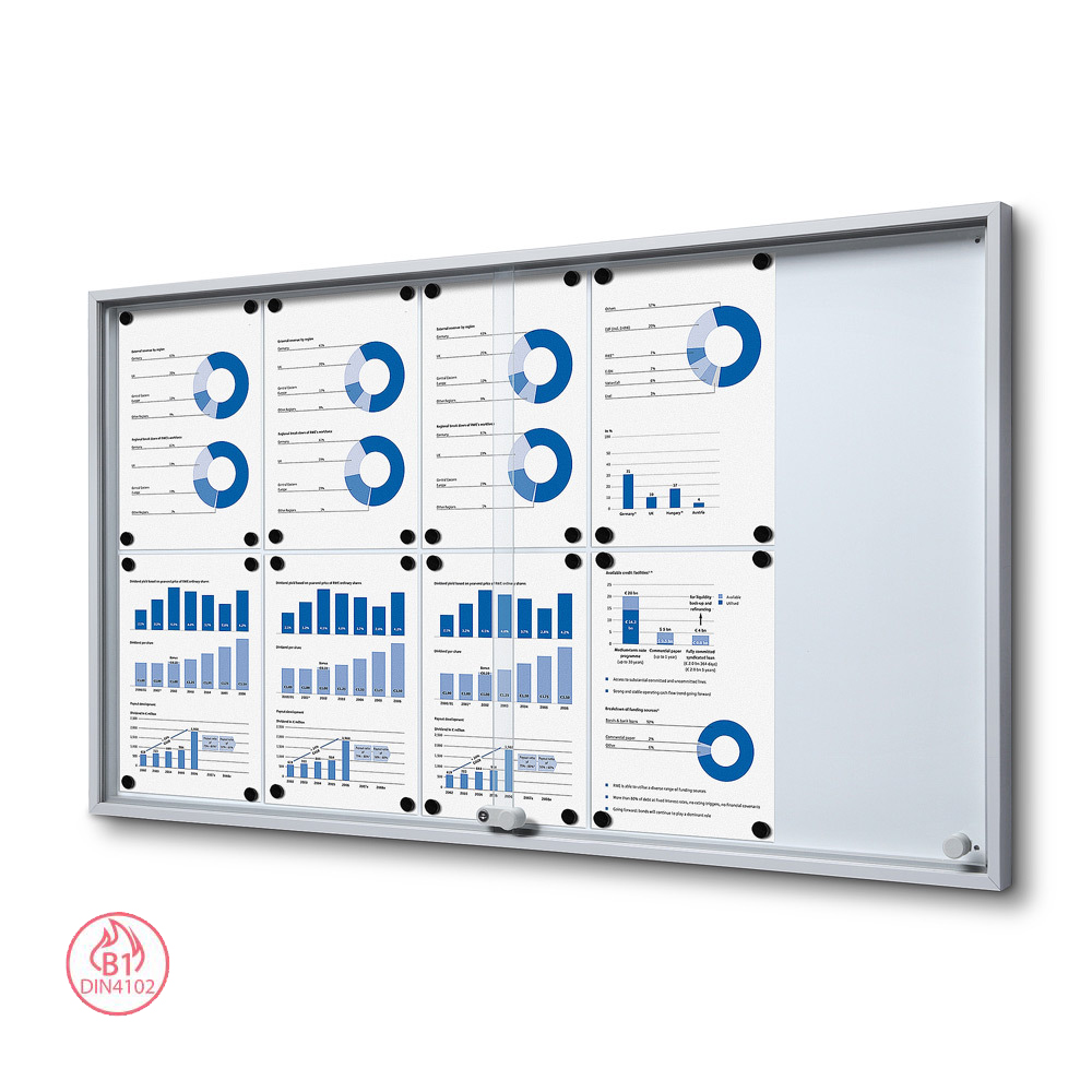 Vnitřní vitrína SCSLG, 10x DIN A4, stříbrná nebo antracitová, s posuvnými dvířky a zkosenými rohy