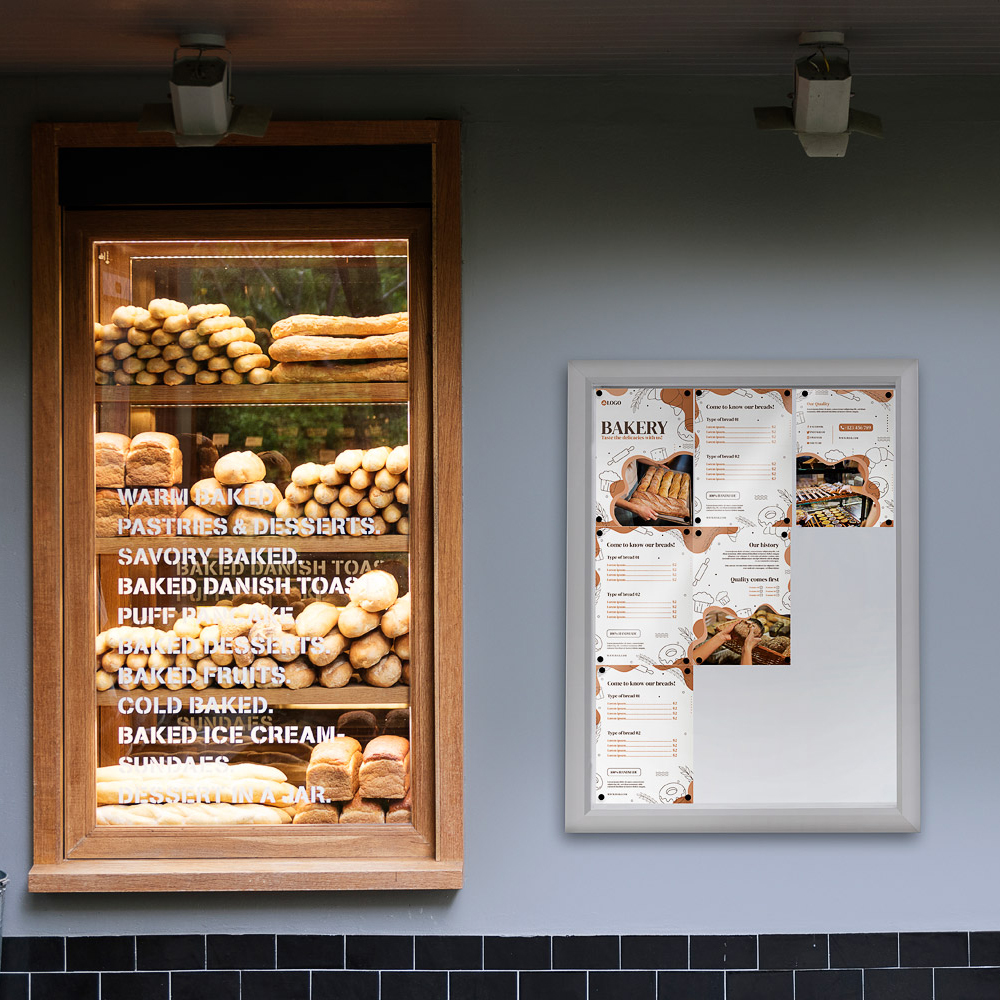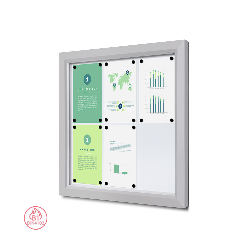 Venkovní uzamykatelná vitrína Slim 6x DIN A4, stříbro nebo antracit, B1 a IP56 Certifikát