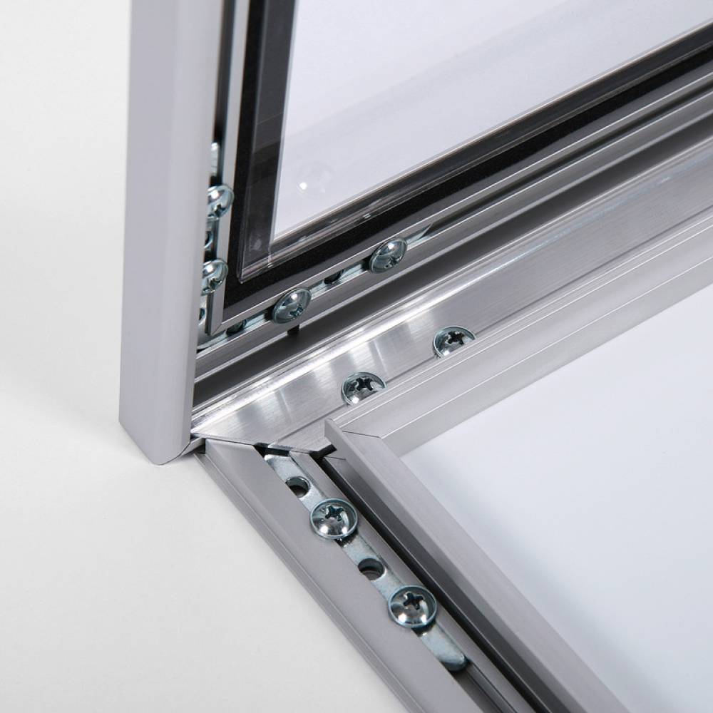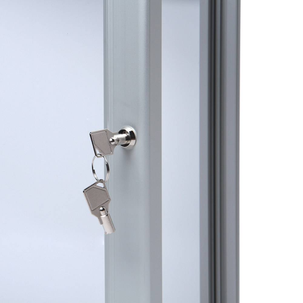 Spojte funkčnost a eleganci s venkovní uzamykatelnou menu vitrínou. Čelní uzamykatelné hliníkové dveře jsou osazeny panelem z čirého polykarbonátu. Hliníkový profil o šířce 37 mm dodává vitríně elegantní nádech a je zárukou že vaše prezentace bude nepřehlédnutelná.