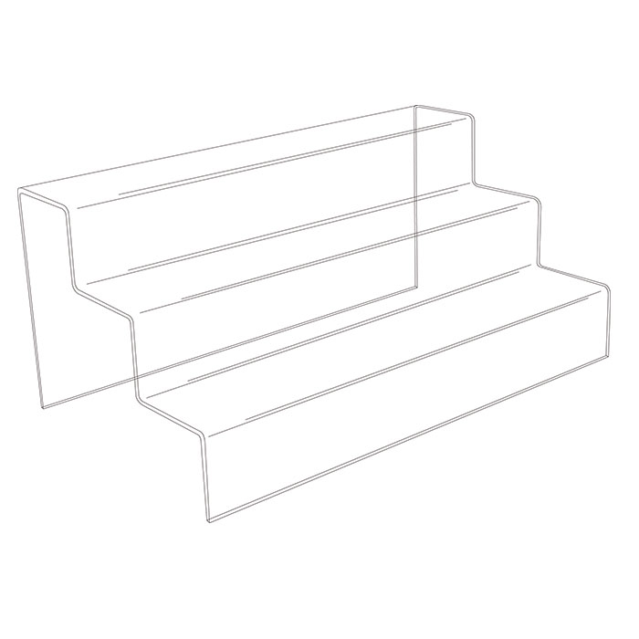 Deko-Treppe als Waren-Tribüne mit 3 Ebenen für mittlere und größere Exponate, Schmuck und andere Ausstellungsstücke. Die Deko-Treppe ist aus hochwertigem Acrylglas aus 3mm Materialstärke mit polierten Kanten gefertigt. Besonders gut geeignet für die Präsentation von Schuhen. Diese Deko-Treppe überzeugt durch eine hervorragende Verarbeitung und ist auch in anderen Größen und Varianten erhältlich.
