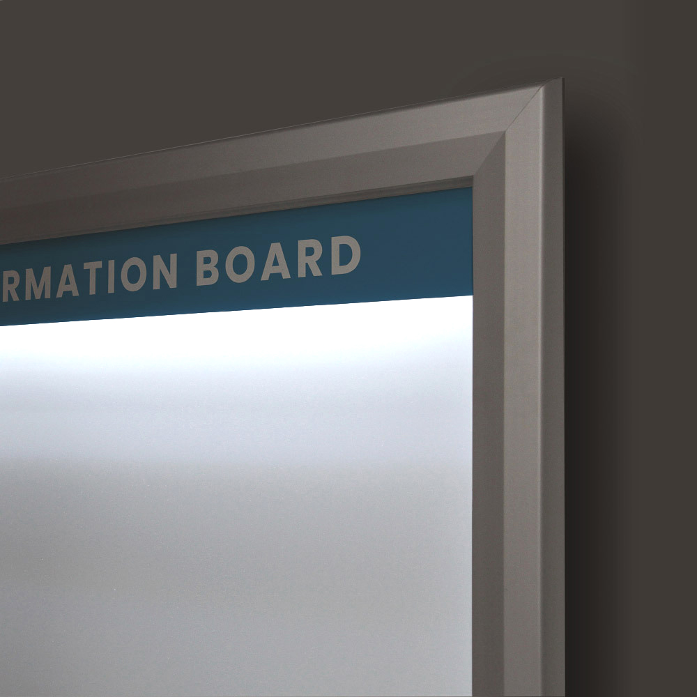 Die integrierte LED-Lichtleiste beleuchtet Ihren Inhalt und sorgt so für zusätzliche Aufmerksamkeit für Ihr Display. Bitte beachten Sie, dass nur der Inhalt unterhalb des Logos beleuchtet wird, nicht das Topschild. Achten Sie außerdem darauf, dass der elektrische Anschluss im Innenbereich erfolgen muss - er darf nicht dem Regen ausgesetzt werden. Bei der Bestellung „nur Rahmen“ ist im Lieferumfang eine leere Topkarte enthalten, die Sie bedrucken können. Bei der Druckoption „Rahmen + Logo-Druck“ bedrucken wir die Topkarte für Sie mit dem von Ihnen hochgeladenen Aufdruck.