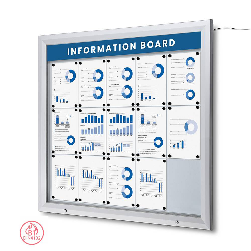 Präsentieren Sie Ihre Nachrichten oder Notizen sicher mit unserem abschließbaren Schaukasten mit beschreibbarer Metallrückwand. Der Schaukasten lässt sich unten öffnen und mit einem Schlüssel sicher verschließen, was einen einfachen Zugang und zusätzliche Sicherheit gewährleistet. Ab einer Größe von 12 x A4 sind Gasdruckfedern enthalten, die die Fronttür (mit 4mm Sicherheitsglas) halten und für den Komfort des Benutzers sorgen. Notizen oder Nachrichten können mit Hilfe von Magneten leicht in der Vitrine angebracht werden.