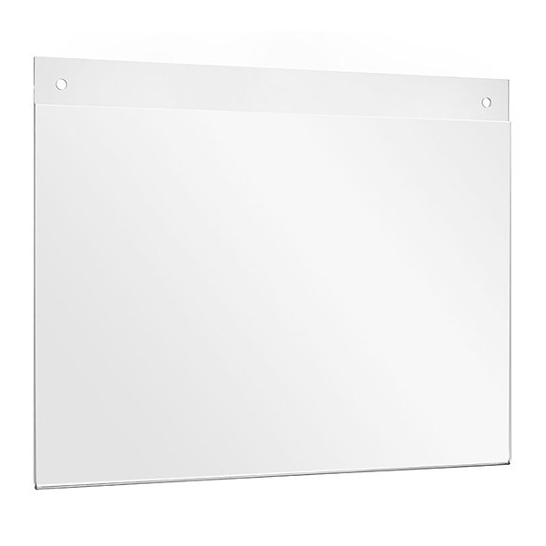 Glasklares Hänge - Werbedisplay im Querformat für DIN A5. Hochwertige Verarbeitung aus klarem Acryl für eine glänzende Präsentation Ihrer Flyer und Merkblätter. Ideal als Infotafel in Verkaufsräumen und Schaufenstern, geeignet zur beidseitigen Einlagen-Beschriftung. Inkl. Lochbohrungen zum Befestigen an Wänden.