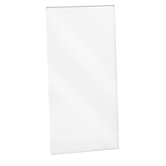 Glasklares Werbedisplay im Hochformat für DIN lang ohne Bohrlöcher. Hochwertige Verarbeitung aus klarem Acryl für eine glänzende Präsentation Ihrer Flyer und Merkblätter. Ideal als Infotafel in Verkaufsräumen und Schaufenstern, geeignet zur beidseitigen Einlagen-Beschriftung. Die Befestigung erfolgt i.d.R. mit Klebeband an glatten Flächen.