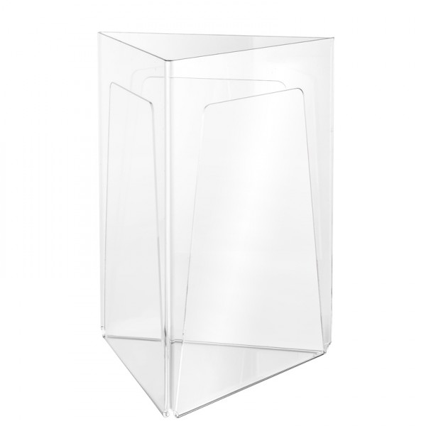 Hochwertiger Werbeaufsteller in Dreiecks-Form als Tisch- oder Tresenaufsteller. Dieser Aufsteller ist geeignet für die Einlage von drei Blättern im DIN A5 Hochformat, kann aber ebenso liegend im Querformat genutzt werden. Dieser Aufsteller kann in der Gastronomie als Speisekartenhalter sowie als Werbeaufsteller für jede Art von Infos am POS zum Einsatz kommen. Hochwertige Verarbeitung aus klarem Acryl für eine glänzende Präsentation Ihrer Informationen und Werbebotschaften. Ideal als Tischaufsteller, Tresenaufsteller und Menükartenhalter, geeignet zur dreiseitigen Einlagen-Beschriftung.